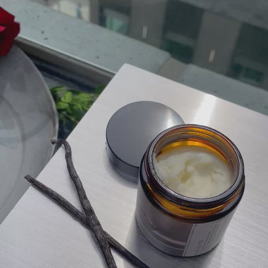 A rich, whipped balm crafted in Montréal from Canadian premium halal beef tallow slow-infused with organic Madagascar vanilla bean, then blended with: